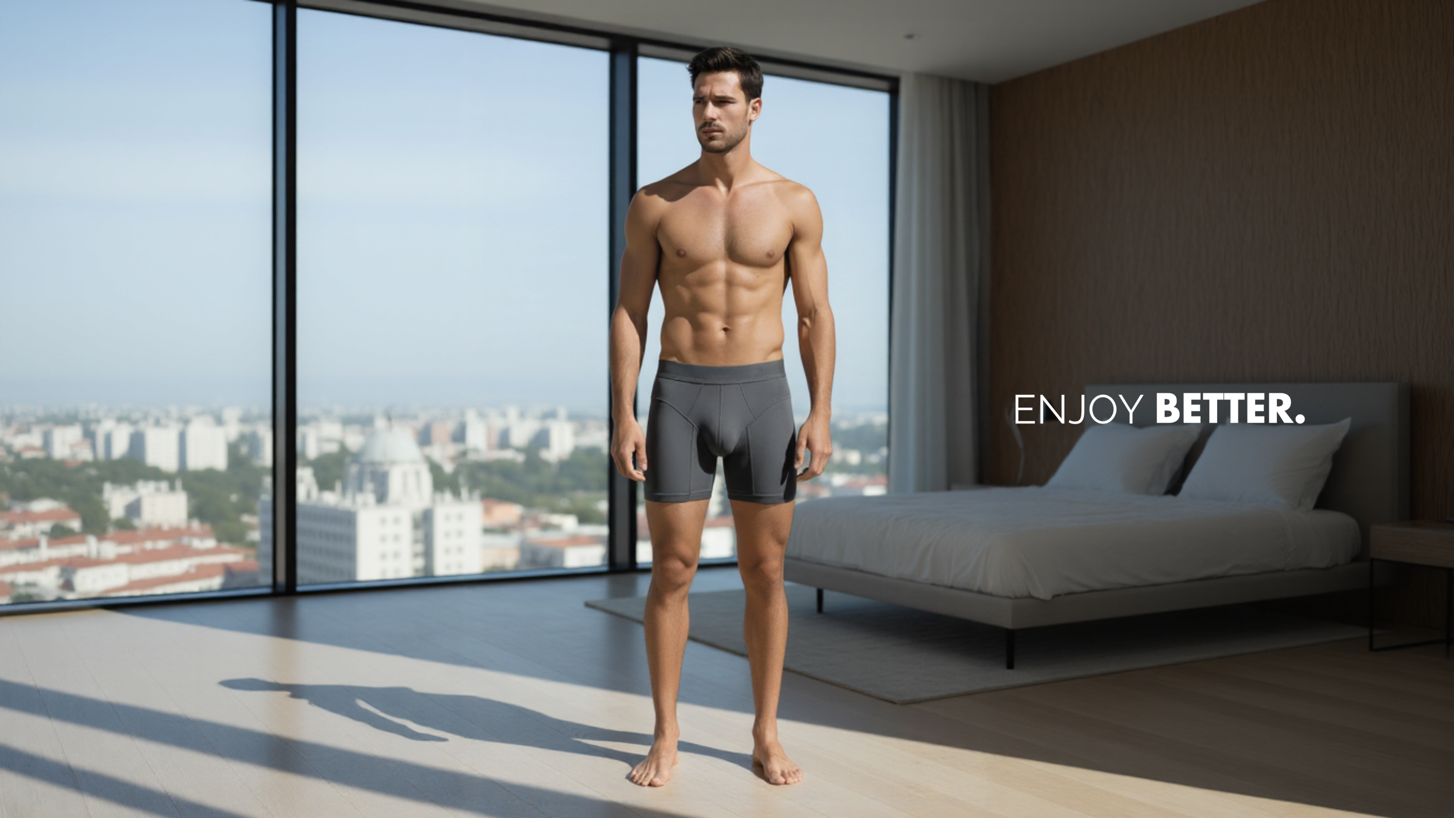 We sew elastic into the groin line which stops chafe between balls and thighs. No other boxer briefs have this.